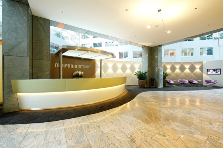 Darüber hinaus können Sie im FIRST BUSINESS & CONFERENCE CENTER hochwertige Konferenz- und Meetingräume mit moderner Ausstattung für bis zu 60 Personen anmieten. Der Millennium Tower verfügt über 50 Stockwerke und ca. 43.000 m² Bürofläche.
