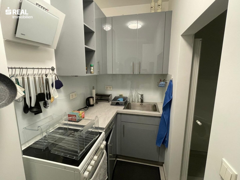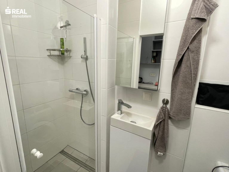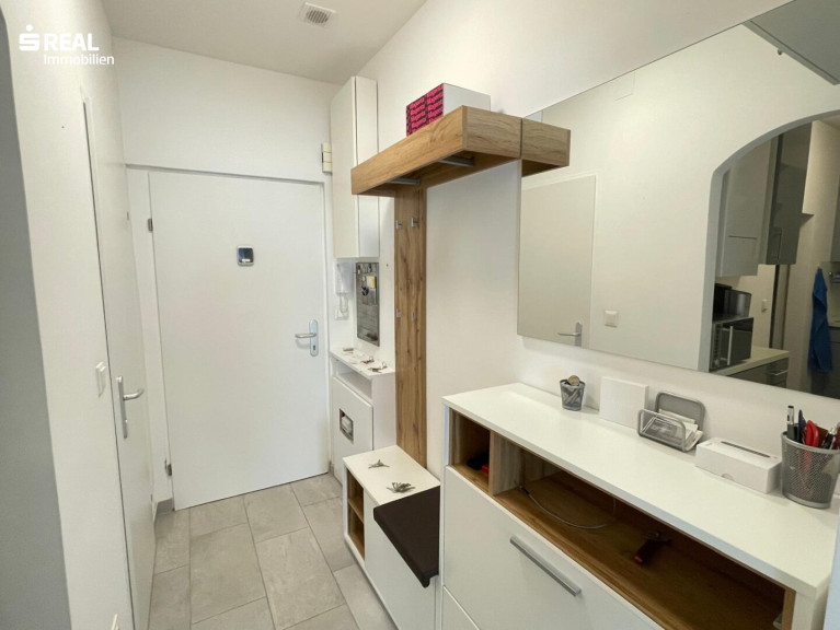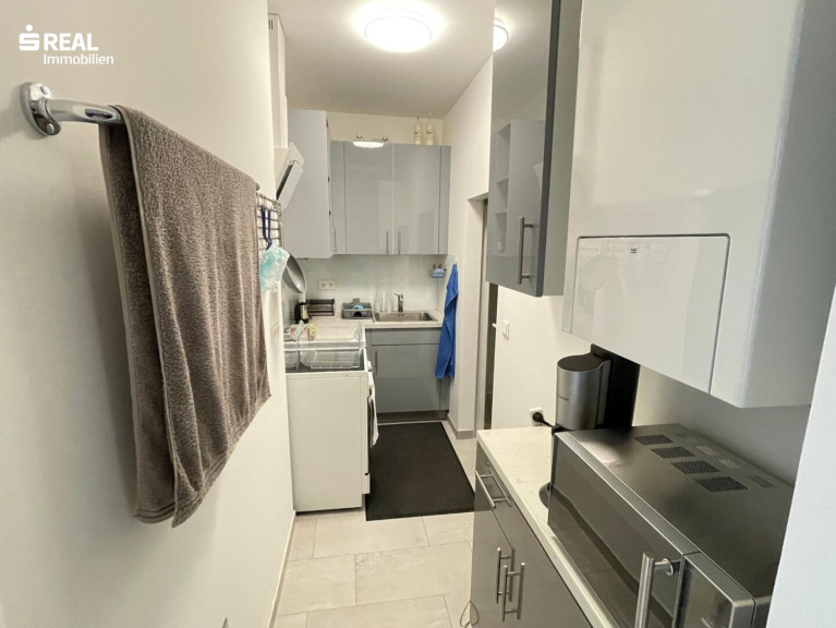 Vorraum, WC, Bad mit Dusche & Waschmaschine, vollausgestattete Küche und dem geräumigen Wohn-/ Schlafzimmer