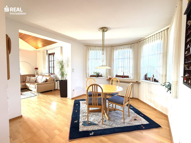 Der Essbereich ist harmonisch mit der gut ausgestatteten Küche mit Fenster verbunden und bildet gemeinsam mit dem Wohnzimmer einen großzügigen Lebensmittelpunkt für Familie und Gäste.