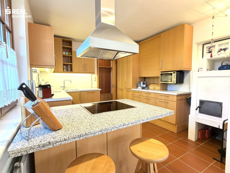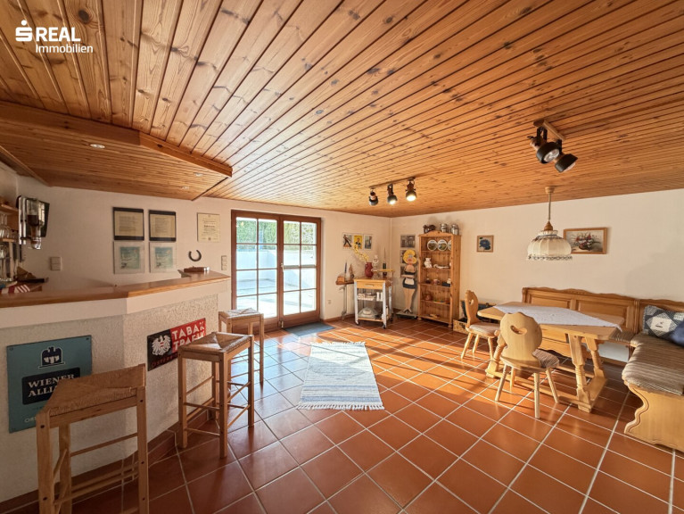 • ein besonders gemütliches Stüberl mit Bar und Eckbank - dank bodentiefer Fenster wirkt auch dieser Bereich hell und einladend – von hier gelangt man direkt auf eine großzügige Terrasse, die sich hervorragend für Grillabende eignet und auch ein Zugang zum Poolbereich.