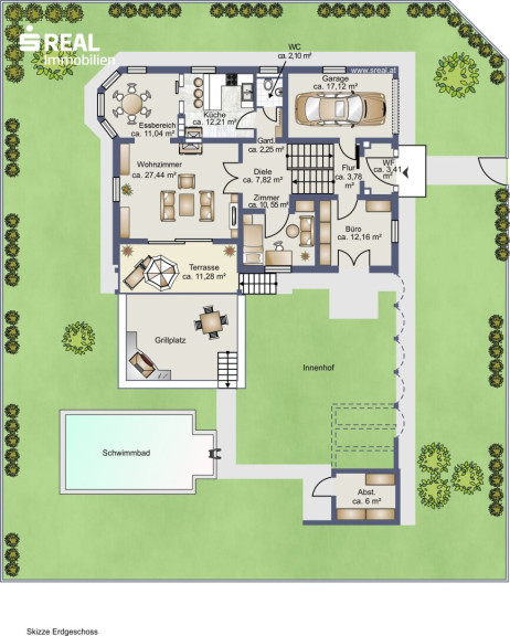 Im Erdgeschoss befinden sich außerdem