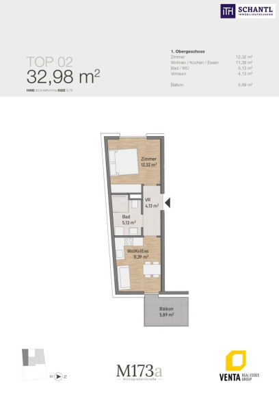 - Bad/WC mit 5,13 m², mit Dusche und Waschmaschinenanschluss