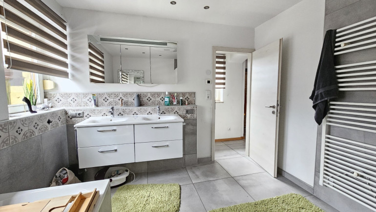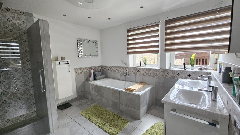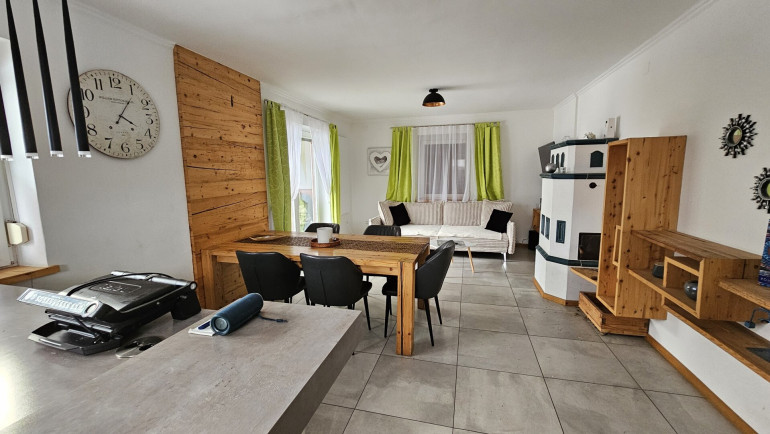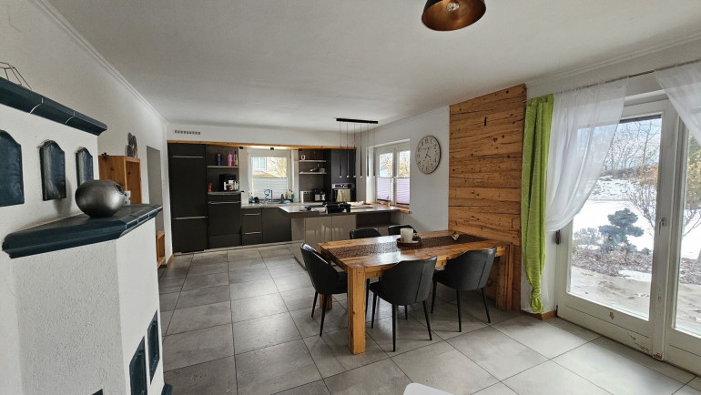Die rund 150 m² verteilen sich auf zwei Ebenen und bieten eine praktische Raumaufteilung. Im Erdgeschoss befindet sich eine gut ausgestattete Einbauküche mit modernen Geräten, die das Kochen zum Vergnügen macht. Das gemütliche Wohnzimmer wird durch einen Ofen zusätzlich aufgewertet. Außerdem gibt es hier ein weiteres Zimmer, das vielseitig genutzt werden kann. Die Liegenschaft ist außerdem voll unterkellert.