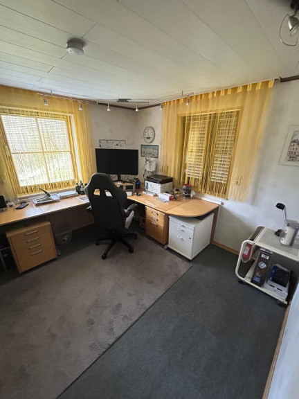 Das gepflegte Haus besticht durch seine durchdachte Raumaufteilung und eine behagliche Atmosphäre. Der großzügige Wohnbereich mit Laminatboden und einem gemütlichen Kamin lädt zu entspannten Stunden ein, während die moderne Einbauküche alle Kochwünsche erfüllt. Das Badezimmer ist mit einer praktischen Dusche ausgestattet und verfügt zudem über ein Fenster, das für angenehmes Tageslicht sorgt.