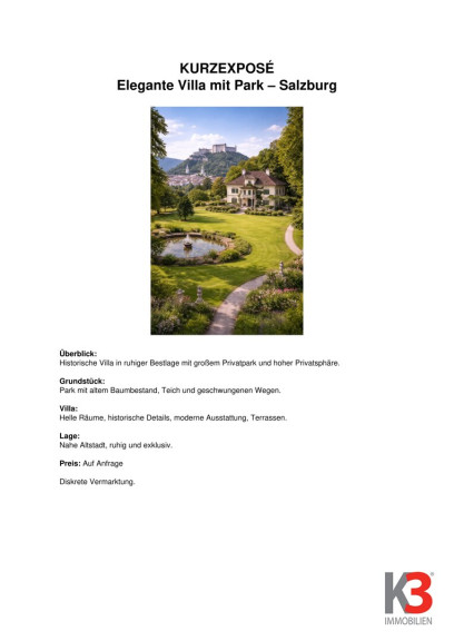 K3 - Stilvolle, historische Villa in ruhiger Bestlage von Salzburg mit weitläufigem, parkähnlichem Grundstück