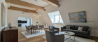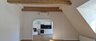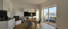 - Wohn-Esszimmer mit halb offener Küche mit Kamin und Ausgang auf den Balkon