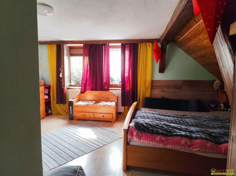 Das Haus erstreckt sich über Erdgeschoss, Obergeschoss und zweites Obergeschoss und bietet dadurch ein besonders flexibles Nutzungskonzept. Im Erdgeschoss stehen ca. 142 m² sowie zusätzlich ca. 20 m² zur Verfügung, die derzeit als Geschäftsfläche genutzt werden und über ein eigenes Bad sowie ein eigenes WC verfügen. Die Ebene umfasst zwei große Wohnzimmer, eines mit Kamin und eines mit Kachelofen, eine kleine Küche, ein Bad mit WC, ein Schlafzimmer sowie einen großen Wintergarten mit Holzofen.
