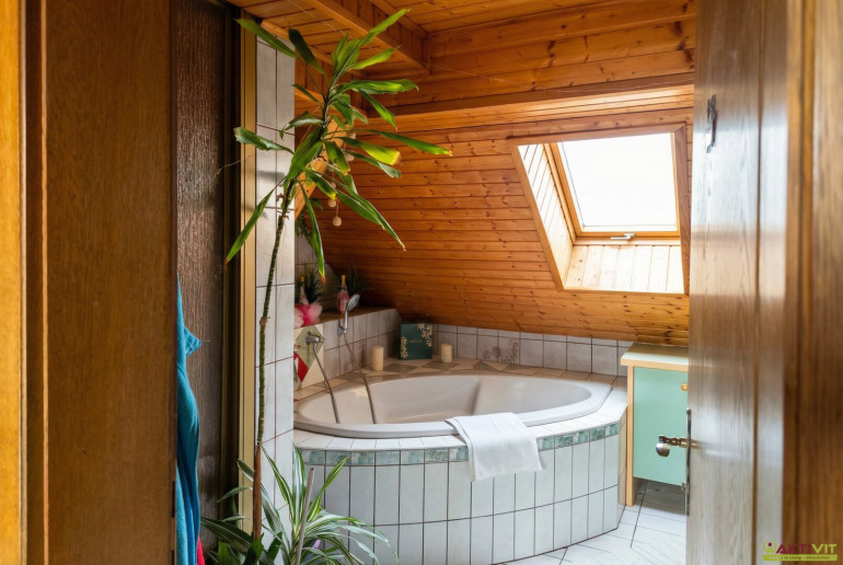 Ein besonderes Ausstattungsmerkmal ist der vorhandene Wellnessbereich mit zwei Infrarotsaunen und einer klassischen Sauna. Mehrere großzügige Wohnräume mit Kamin- bzw. Ofenanschluss, der große Wintergarten sowie die Kombination aus Innen- und Außenflächen schaffen ein Haus mit viel Wohnqualität und vielseitigen Nutzungsmöglichkeiten. Die derzeitige Aufteilung eignet sich ideal für gemeinsames Wohnen mehrerer Generationen, für zwei Haushalte unter einem Dach oder für Personen, die Wohnen und Arbeiten kombinieren möchten.