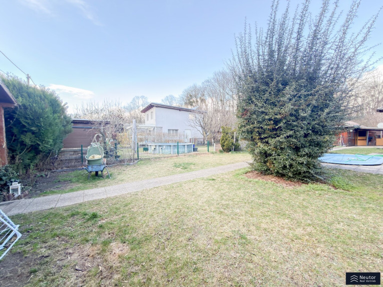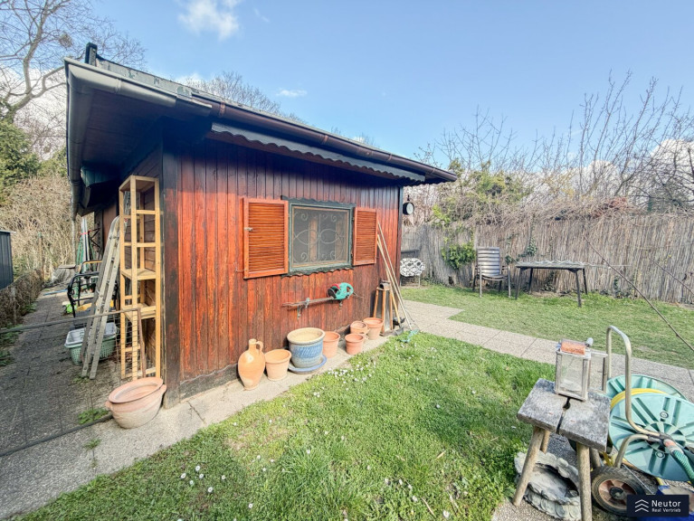 Dieses charmante Kleingartenhaus in urbaner Lage vereint Ruhe, Erholung und praktische Wohnqualität auf ideale Weise. Eingebettet in eine grüne Umgebung genießen Sie hier eine angenehme Rückzugsoase mitten in der Stadt. Beim Betreten des Grundstücks durch das Eingangstor eröffnet sich der großzügig angelegte Garten, der viel Platz zum Entspannen bietet. Ein Highlight ist der Pool, der an warmen Sommertagen für erfrischende Abkühlung sorgt. Das Haus betreten Sie über die Terrasse und gelangen direkt in die funktional ausgestattete Küche. Diese verfügt über alle wichtigen Geräte sowie einen gemütlichen Essbereich, der dank der Fensterflächen hell und einladend wirkt und Platz für bis zu vier Personen bietet. Linkerhand der Küche befindet sich der Schlafraum, der ausreichend Platz für ein Doppelbett bietet und durch Tageslicht eine angenehme Wohnatmosphäre schafft. Der Wohnbereich ist offen gestaltet und direkt mit dem Essbereich verbunden, wodurch ein harmonisches Raumgefühl entsteht. Das Badezimmer liegt im hinteren Teil des Hauses und ist mit Dusche, Waschbecken und WC ausgestattet. Auch der Außenbereich überzeugt: Die überdachte Terrasse lädt mit Sitzmöglichkeiten zum Verweilen ein. Ergänzt wird das Angebot durch zwei praktische Gartenhütten – eine neben der Terrasse sowie eine weitere in Poolnähe –, die ausreichend Stauraum für Gartengeräte und Zubehör bieten. Dieses Kleingartenhaus ist ideal für alle, die eine grüne Oase in der Stadt suchen. Wir dürfen gem. § 5 Maklergesetz darauf hinweisen, dass wir als Doppelmakler tätig sind und ein wirtschaftliches/familiäres Naheverhältnis zu unseren Auftraggebern besteht. Das wirtschaftliche Naheverhältnis ergibt sich aus regelmäßiger geschäftlicher Verbindung. Irrtum vorbehalten.