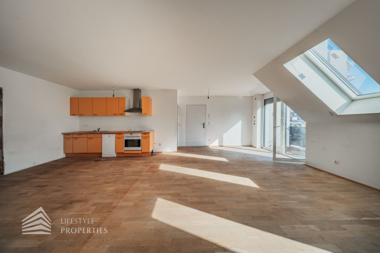 Wir freuen uns, Ihnen die Gelegenheit bieten zu dürfen, eine moderne, im Jahr 2023 fertiggestellte Wohnung zu erwerben. Die ca. 76 m² große Einheit befindet sich im ersten Dachgeschoss und ist bequem mit dem Lift erreichbar und überzeugt durch eine optimale und durchdachte Raumaufteilung. Die Wohnfläche teilt sich auf in einen großzügigen Wohn-/Essbereich, zwei Schlafzimmer, ein Badezimmer, ein separates WC und einen Abstellraum.