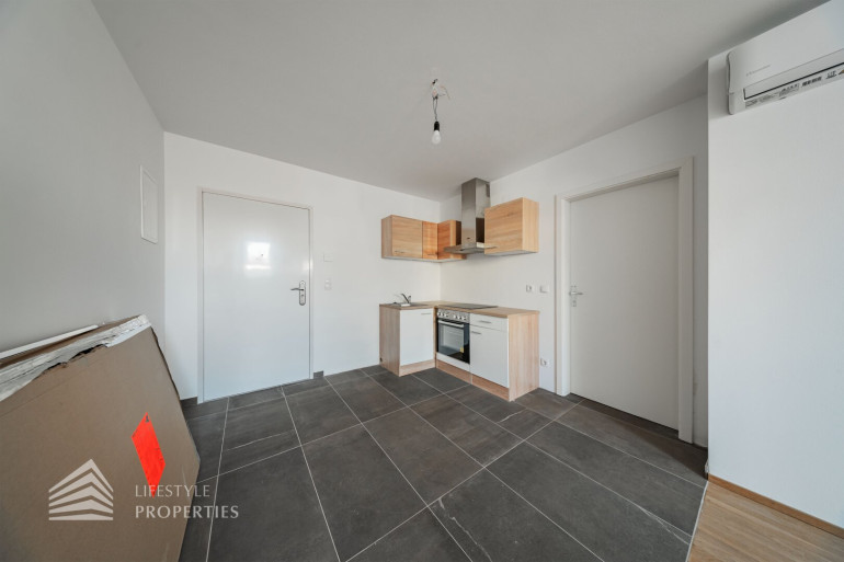 Beim Betreten der Wohnung gelangen Sie direkt in die großzügige Wohnküche. Von hier aus erreichen Sie das Schlafzimmer sowie das Badezimmer mit WC. Ein weiterer Pluspunkt dieser Wohnung ist die hochwertige Ausstattung: Eine moderne Küche ist bereits im Kaufpreis inkludiert. Zudem verfügt die Wohnung über eine Klimaanlage, die auch an heißen Sommertagen für angenehme Temperaturen sorgt, sowie über außenliegende elektrische Rollläden, die zusätzlichen Komfort und optimalen Sonnenschutz bieten.