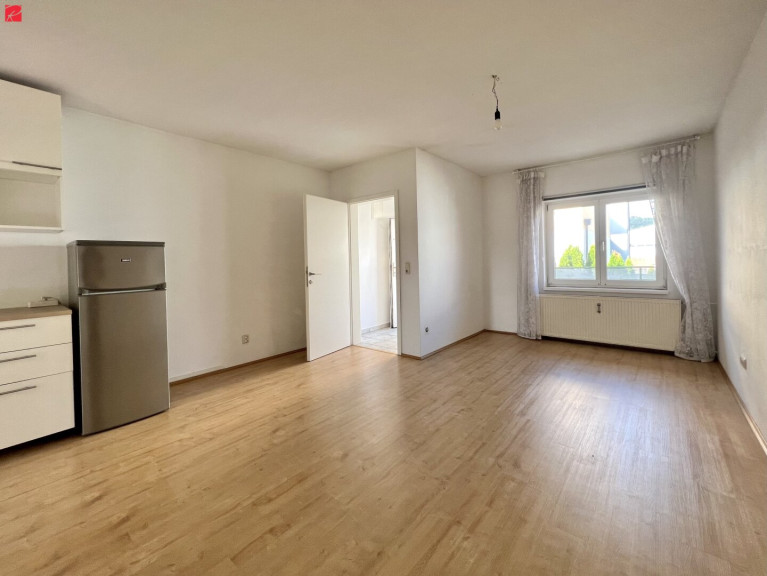 Über den Vorraum gelangen Sie in die großzügige Wohn-Essküche. Die Küche überzeugt durch ein schlichtes Design und einen Anschluss für einen Geschirrspüler.
