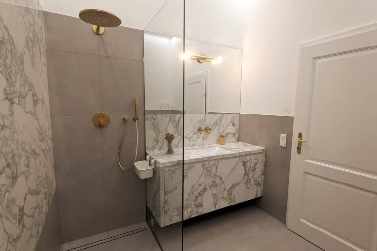 Die Wohnung verbindet klassischen Altbau-Charme mit modernen, durchdachten Details: Edles Parkett, geschmackvolle Fliesen und eine hochwertige Haustechnik schaffen ein Wohnambiente, das Tradition und zeitgemäßen Komfort harmonisch vereint. Für nachhaltige Behaglichkeit sorgt eine umweltfreundliche Heizlösung mit Fußbodenheizung. Die modernen Badezimmer sind geschmackvoll gestaltet und bieten Ihnen die Möglichkeit, sich nach einem langen Tag zu entspannen und zu erfrischen. In der warmen Jahreszeit sorgt eine moderne ferngesteuerte Klimaanlage für behagliche Raumtemperaturen.