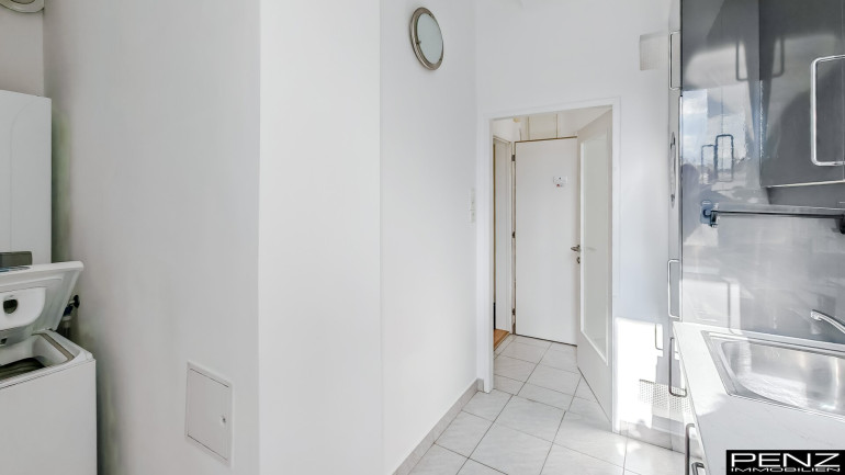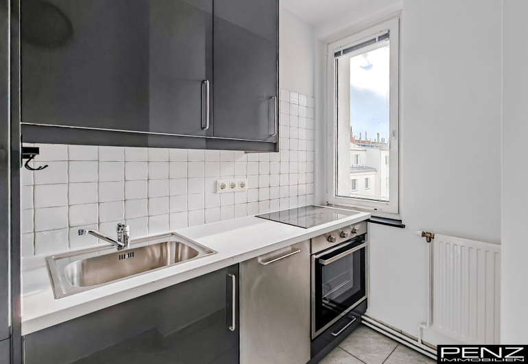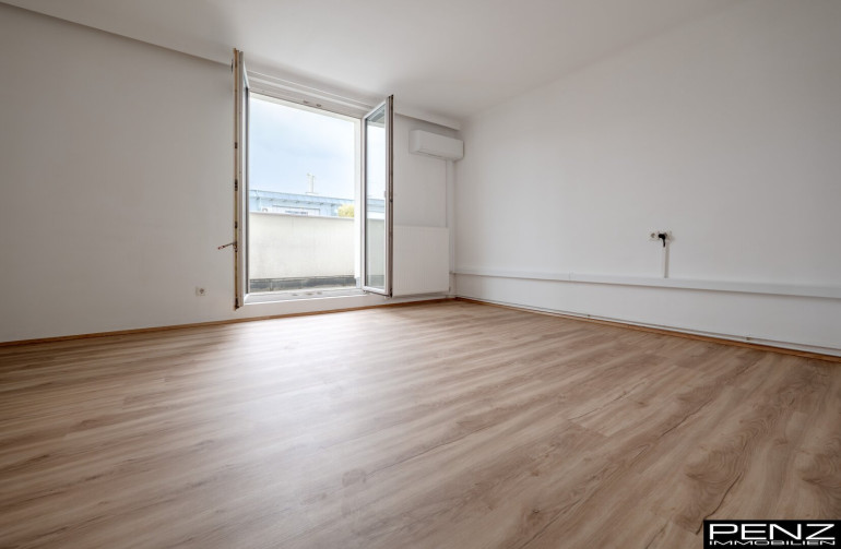 Die Wohnung bietet modernes City-Living auf ca. 48m2 inklusive Terrasse und befindet sich im 6. Liftstock. Das helle Wohnzimmer mit Klimaanlage und Zugang zur Terrasse (ca. 7m2) ist Nord-Ost -gerichtet. Das Schlafzimmer, das Bad und die Küche sind Süd-West in den ruhigen Innenhof gerichtet.