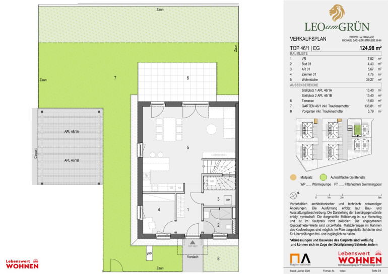 - Je 2 PKW-Abstellplätze pro Haus