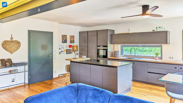Fliesen, Parkett, Fußbodenheizung, Einbauküche, Wohnküche / offene Küche, Garage, Parkplatz
