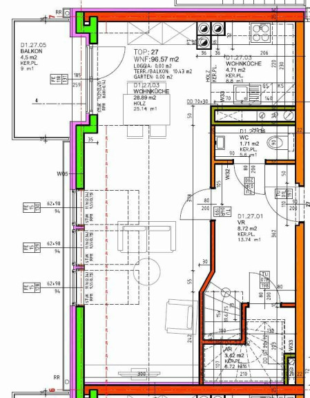 96,57 m² Wohnfläche + 4,5 m² Balkon + 5,93 m² Terrasse