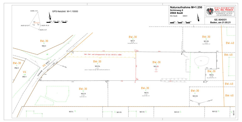 Sooß - ein Ort in einer idyllischen, wunderschönen Landschaft die zum Verweilen, Genießen und Entspannen und gleichzeitig zu zahlreichen sportlichen Aktivitäten einlädt. Lage des Grundstücks - Entfernung (ca.): Der Bus der Linie 361, 556 ist nur 1,4km entfernt (8min zum Bahnhof Baden). Der Kindergarten ist 900m und die Volksschule nur 1km entfernt. Das Einkaufszentrum in Bad Vöslau (Bipa, DM, Merkur, Hofer, Lidl, etc.) ist 2 km entfernt und mit dem Auto leicht erreichbar.