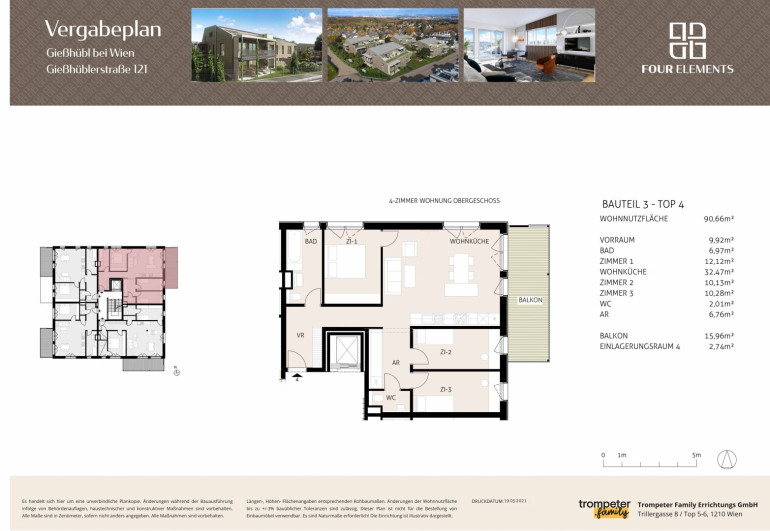 Unter dem Namen „FOUR ELEMENTS“ wurde in der Gießhüblerstraße 121 / Ecke Hochleitengasse von der Trompeter Family Errichtungs GmbH ein besonders exklusives und ökologisch nachhaltiges Wohnhausprojekt in energieeffizienter Holzbauweise realisiert. Als kompetenter Partner, der mit über 90 Jahren Erfahrung im Holzbau und über 2.000 umgesetzten Einfamilienhäusern als Passivhauspionier der ersten Stunde gilt, ist die innovative Kärntner Firma Weissenseer mit an Bord.