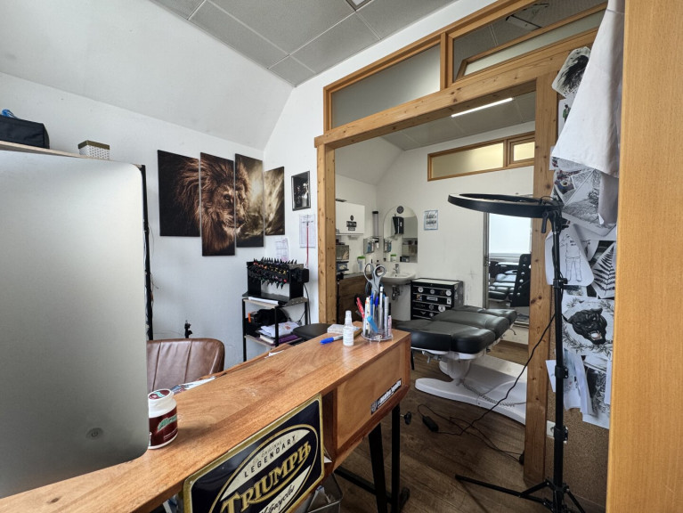 Das Objekt wurde zuletzt als Tattoo-Studio genutzt und eignet sich aufgrund der Raumaufteilung ideal für Dienstleistungsbetriebe, Studios, Kosmetik, Praxisräume, Büro oder ähnliche Nutzungskonzepte.