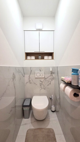 Im Zuge einer umfassenden Sanierung im Jahr 2022 wurde die Wohnung auf einen zeitgemäßen Standard gebracht – inklusive komplett erneuerter Elektrik. Hochwertiger Eichenparkettboden, großformatige Fliesen, neue Infrarot-Deckenheizung sowie eine moderne LED-Beleuchtung sorgen für ein elegantes Wohnambiente. Der helle Wohnbereich bietet Zugang zu einer Loggia mit schönem Fernblick – ein idealer Rückzugsort zum Entspannen. Zusätzlich gibt es eine kleine, balkonähnliche Terrasse, die von der Küche zugänglich ist. Zwei weitere Zimmer lassen sich flexibel als Schlaf-, Kinder- oder Arbeitszimmer nutzen. Das modern gestaltete Badezimmer ist mit einer hochwertigen Rainshower-Dusche ausgestattet und unterstreicht den gehobenen Wohnkomfort. Zusätzlichen Stauraum bieten ein praktischer Abstellraum in der Wohnung sowie ein geräumiges Kellerabteil