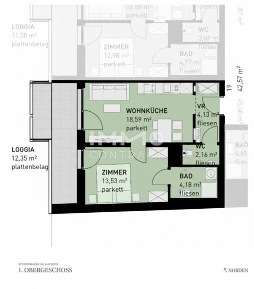 - Jede Wohnung mit privater Freifläche (Loggia, Balkon, Terrasse, Eigengarten)