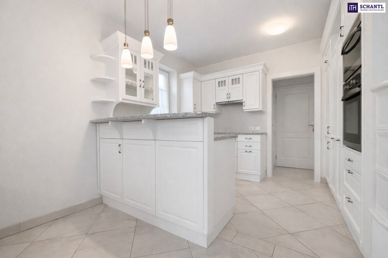 - Voll ausgestattete Küche mit hochwertigen Einbaugeräten und viel Stauraum.