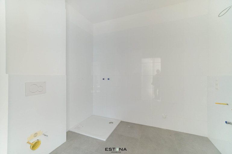 Fliesen, Parkett, Fußbodenheizung, Wohnküche / offene Küche, Personenaufzug, Ostbalkon, Badewanne, Dusche