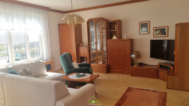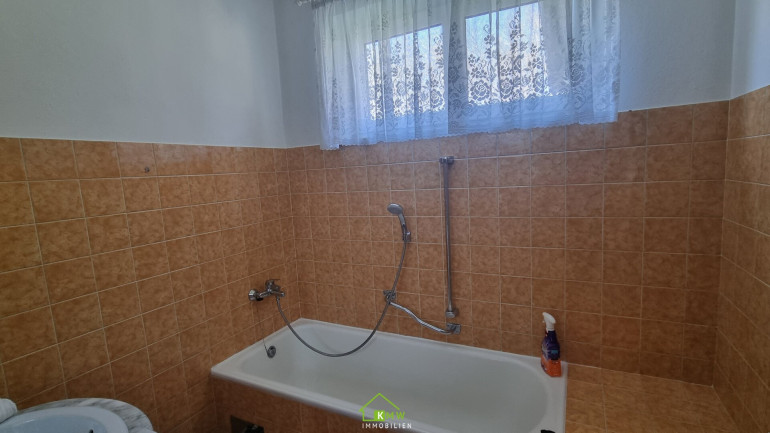 Die Wohnfläche von rund 105m² verteilt sich auf Wohnzimmer mit Ausgang auf die Terrasse, 3 Schlafzimmer, Gang, Vorraum, Abstellraum, Küche, Bad mit Badewanne und separates WC.