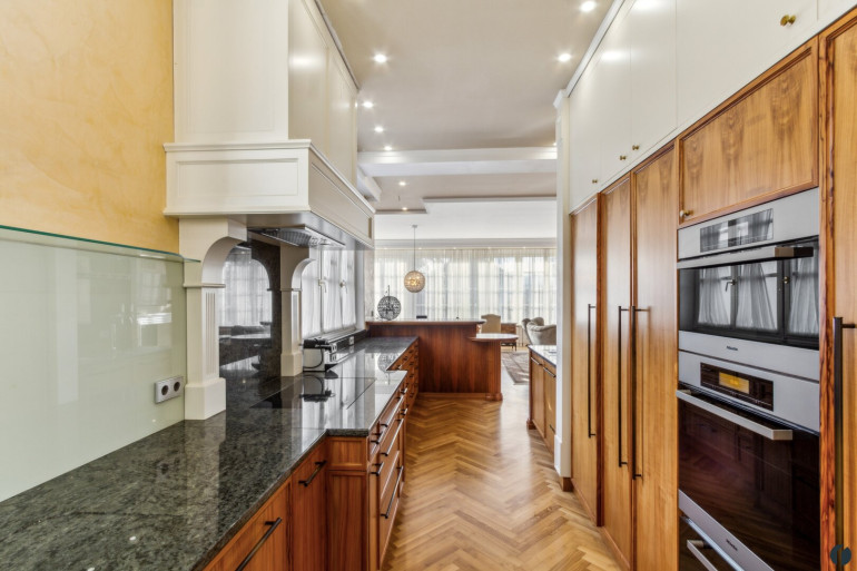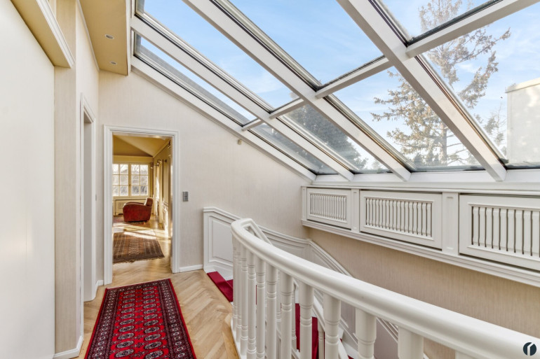 - Die weitläufige Wohnlounge mit über 60m², edlen Parkettböden und offenem Kamin bildet das Herzstück des Hauses – ein Ort, an dem sich Eleganz und Behaglichkeit vereinen