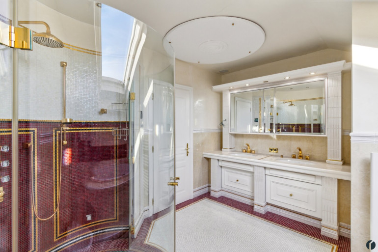 Parkett, Fliesen, Gas, Fußbodenheizung, Kamin, Zentralheizung, Wohnküche / offene Küche, Personenaufzug, Bad mit Fenster, Badewanne, Dusche, Carport, Wasch/Trockenraum, Alarmanlage, Sauna, Swimmingpool