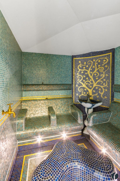 - Wellnessbereich mit Sauna, Dampfbad, Badezimmer und WC
