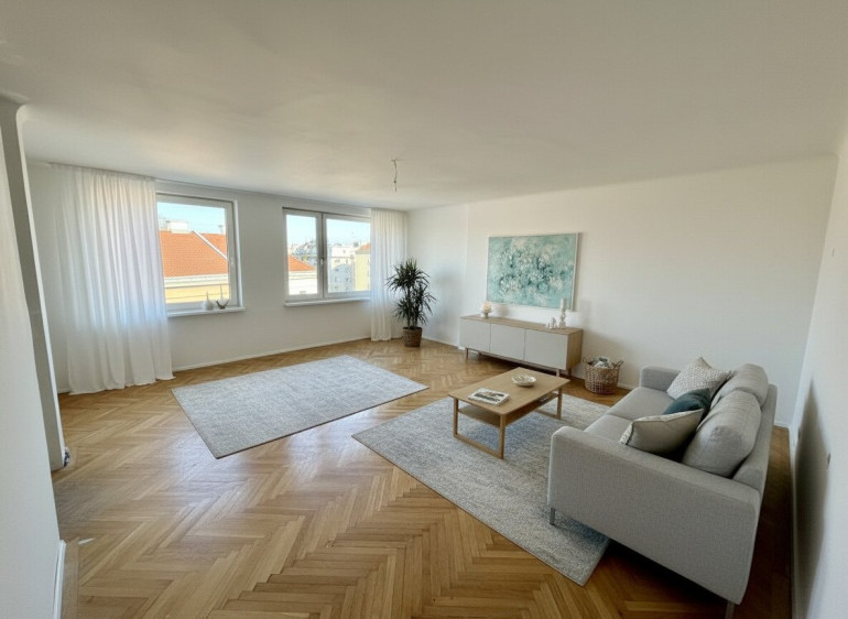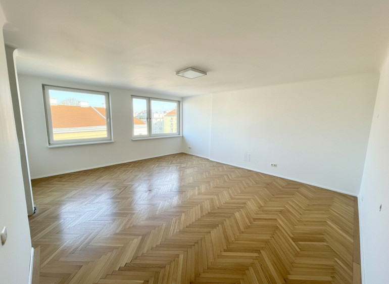 Das großzügige Hauptzimmer mit knapp 30 m² überzeugt durch eine große Fensterfront, die für viel Tageslicht und eine angenehme Wohnatmosphäre sorgt.