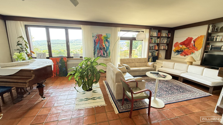 - Großzügiger Wohnsalon mit Zugang zur Terrasse und traumhaftem Ausblick