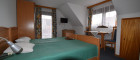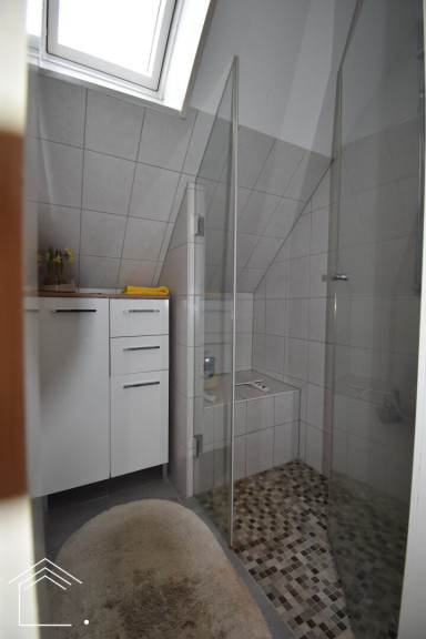 Über die Treppe gelangen Sie in das Obergeschoß in welchem sich vormals die 4 Fremdenzimmer befanden. Von zwei Zimmern aus gelangen Sie auf die einladende Dachterrasse mit einer Fläche von ca. 46 m². Eine Toilette und ein kleines Badezimmer mit Dusche vervollständigen die Räume im Obergeschoß.