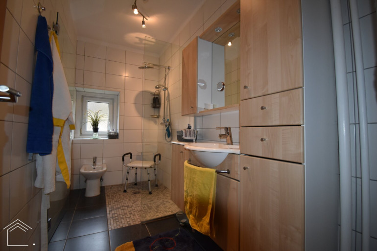 Auf der großzügigen Wohnfläche von ca. 350 m² finden Sie im Erdgeschoß 4 Zimmer, eine offene Wohnküche mit anschließendem Frühstücksraum, welcher sich als großzügiges Wohnzimmer umgestalten ließe. Ein modernisiertes Badezimmer samt barrierefreier Dusche und eine getrennte Toilette ergänzen die Flächen im Erdgeschoß.