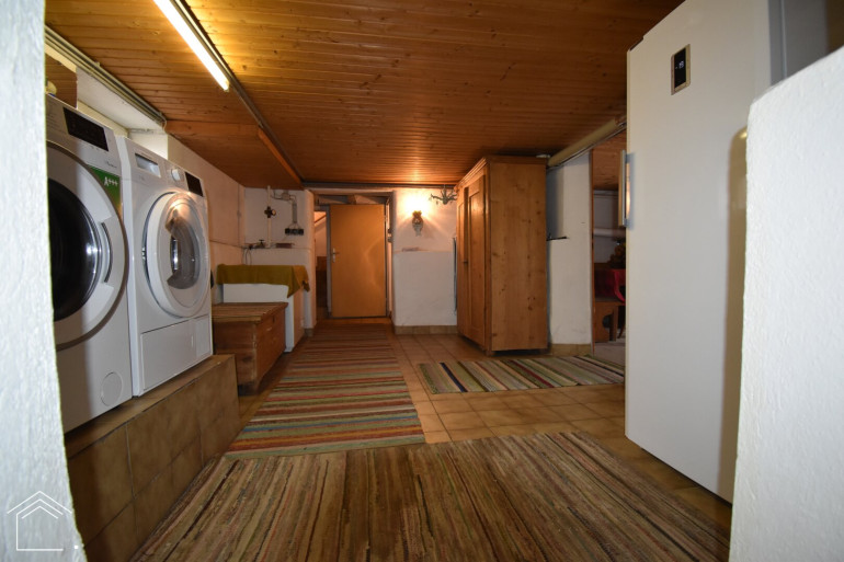 Das Gebäude ist teilweise unterkellert und befindet sich im Keller eine Garage für Ihr Fahrzeug mit direktem Zugang ins Gebäude, ein Kellerstüberl mit Schank, einen Wirtschaftsraum für Waschmaschine und Wäschetrockner sowie eine Wirtschaftsküche, in welcher bis vor Kurzem noch köstliche Marmeladen zubereitet und Früchte eingekocht wurden.