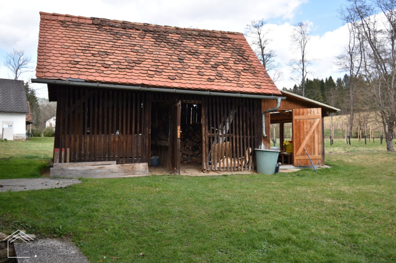 Ein zweiter Schuppen befindet sich hinter dem Wohnhaus und wird aktuell als Holzlager genutzt.