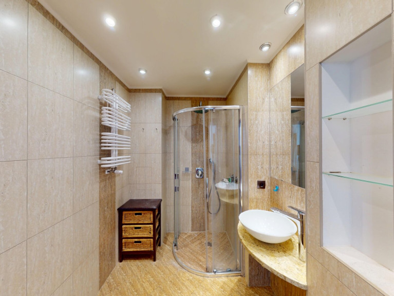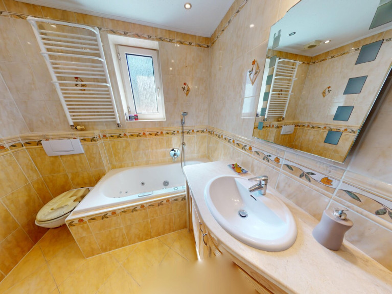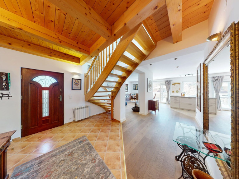 Fliesen, Parkett, Steinboden, Gas, Kamin, Zentralheizung, Einbauküche, Wohnküche / offene Küche, Ostbalkon, Westbalkon, Badewanne, Dusche, Kabel/Satelliten-TV, Carport, Parkplatz, Sauna, Wasch/Trockenraum