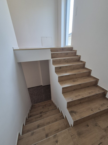 Das ca. 58,5 m² große Erdgeschoss besteht aus einem Vorraum, einem großzügigem Wohn/Essbereich mit ca. 27 m², einer Küche, Wirtschaftsraum und Technikraum, beim Eingangsbereich neben dem Vorraum ist auch ein WC und ein praktischer Abstellraum untergebracht.