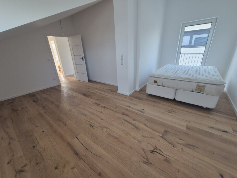Das ca. 60 m² große Obergeschoss verfügt über 3 Schlafzimmer, das größte Schlafzimmer mit ca. 17,60 m² kann mit einem zusätzlichen Schrankraum mit ca. 5,64 m² ergänzt werden, ein Badezimmer mit WC und ca. 8 m² großem Vorraum sind im Obergeschoss situiert.