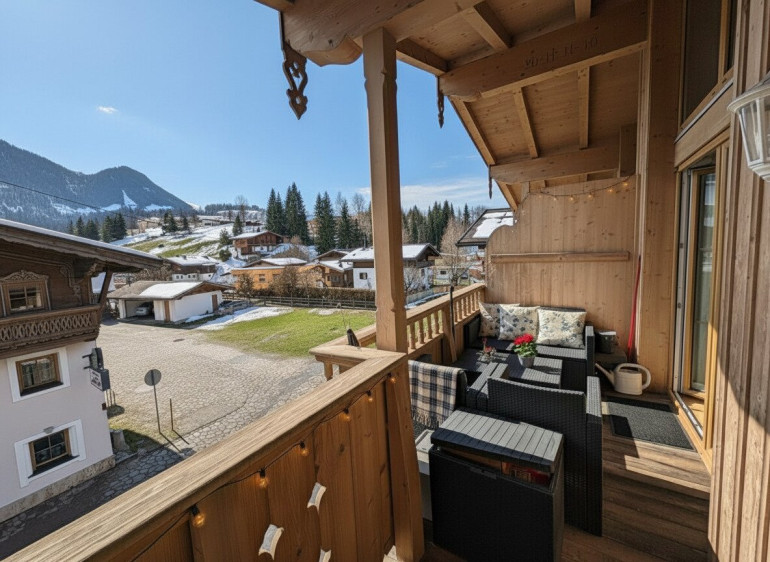 sonniger Balkon mit Bergblick