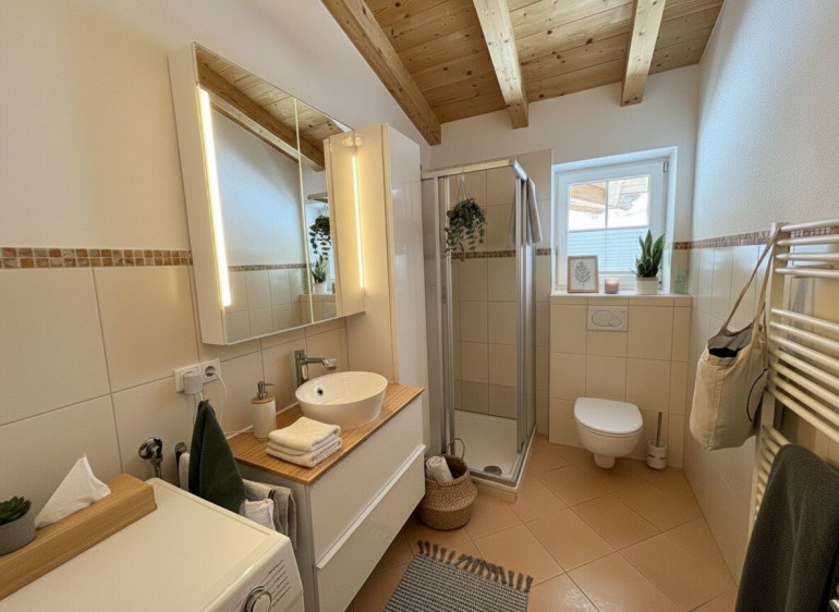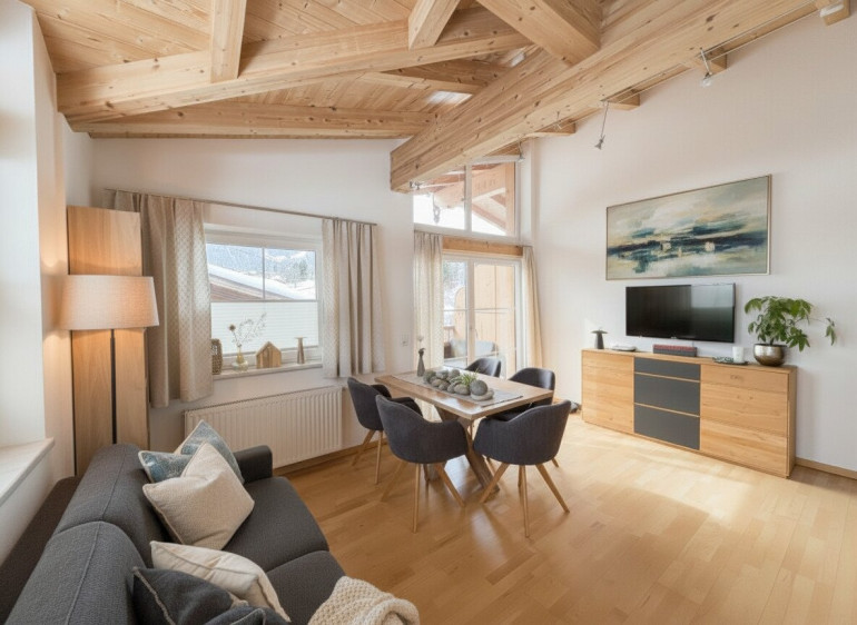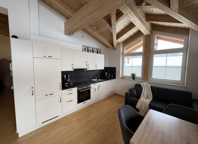 Diese gepflegte Dachgeschosswohnung vereint alpinen Charme mit moderner Wohnqualität. Der sichtbare Dachstuhl, großzügige Fensterflächen und die durchdachte Raumaufteilung schaffen ein besonderes Wohngefühl auf kompakter Fläche. Die Kombination aus ländlicher Architektur, zentraler Lage und hochwertiger Ausführung macht dieses Objekt sowohl für Eigennutzer als auch als wertstabile Anlage interessant.