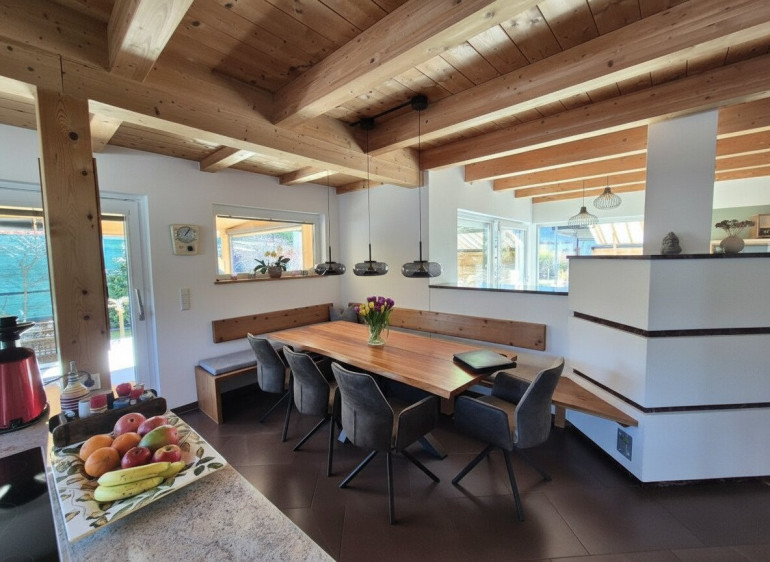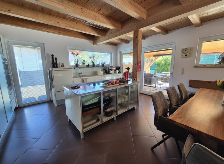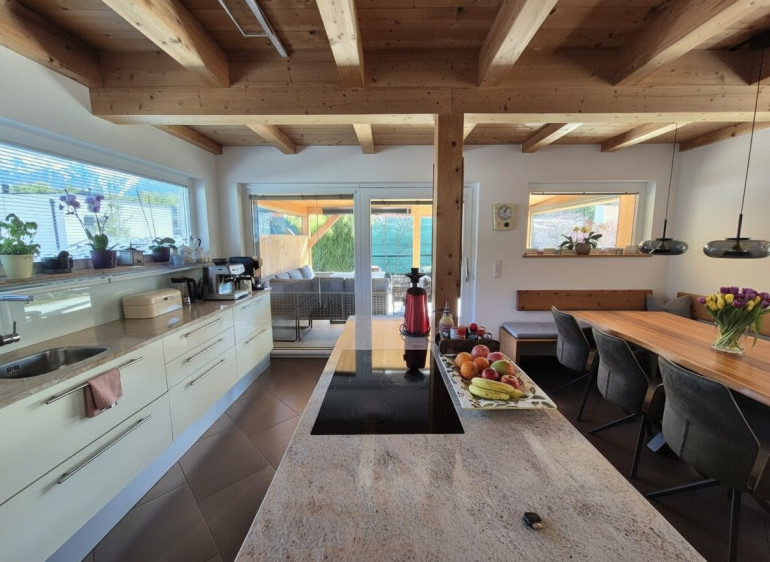 Zum Verkauf steht hier ein nachhaltiges in Holzriegelbauweise errichtetes energieeffizientes Wohlfühlhaus in einer traumhaft schönen Toplage. Highlights des Objektes : # traumhaft schöne ruhige Lage in Mieming-Barwies # wunderschöne große Wohnküche # gemütlicher großer Kachelofen mit Sichtfenster im Wohnbereich # riesiger gemütlicher Wohlfühlwintergarten # große Sonnenterasse mit gepflegtem Garten # großes modernes Badezimmer mit Doppelwaschbecken , Badewanne und separater Dusche im Obergeschoß # Elternschlafzimmer mit begehbarem Kleiderschrank und Sonnenbalkon # 2 große Kinderzimmer im Obergeschoß # moderne Dusche im Kellergeschoß # große teilweise beheizte Kellerräume # moderne Pelletsheizung mit Fußbodenheizung # 10kwp Photovoltaikanlage mit 11 kh/W Speicher mit Stromtankstelle # Glasfaseranschluß # große Garage + großer Carportabstellplatz + Parkplätze im Freien