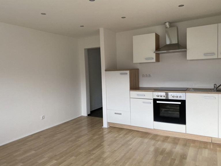 Wohnraum mit integrierter Komplettküche, 2 Schlafzimmer, Eingangsbereich, sowie Bad mit Wanne und WC. Die optimale 2er WG!!