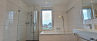 • Badezimmer mit Badewanne, Dusche, WC & Fenster