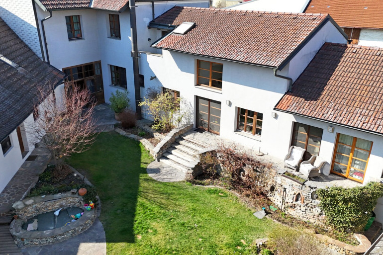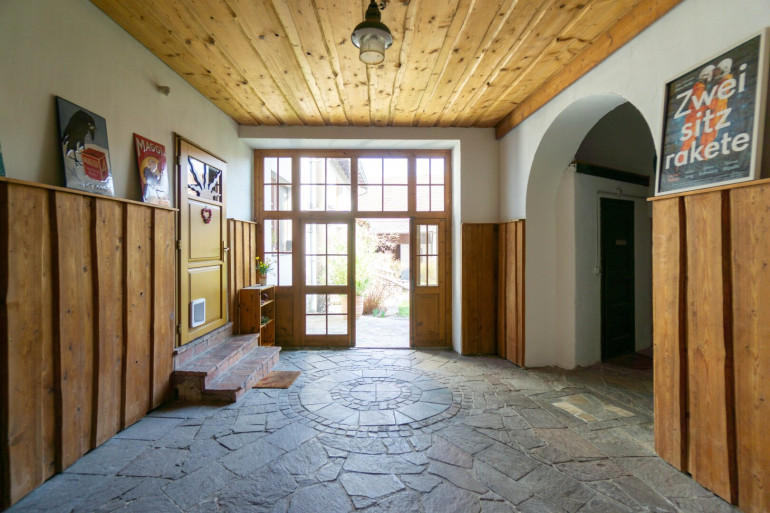 Das zweigeschoßige Wohnhaus verbindet historischen Charme mit moderner Ausstattung. Highlights sind die offene Küche mit hochwertigen Geräten, ein beeindruckendes Wohn-/Esszimmer mit ca. 51 m² und Galeriehöhe, ein Wellnessbereich (Sauna) sowie mehrere Schlafzimmer, Bad, Schrankraum und Loggia. Beheizung via Pellets (2022) und Kamin.