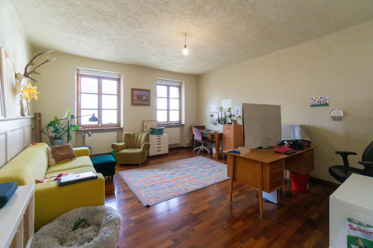 Separat zugängliche Einheit im ehemaligen Stall mit Wohnbereich, Schlafzimmer und Bad – ideal für Gäste oder Mehrgenerationennutzung.
