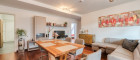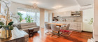 Der hochwertige Merbau-Holzboden verleiht dem Wohn-Essbereich eine elegante, warme Ausstrahlung und unterstreicht den exklusiven Charakter der Wohnung.