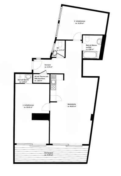 Die zwei modernen Bäder und die zwei WCs bieten Ihnen optimalen Komfort und Privatsphäre für alle Bewohner. Ob für entspannende Wellness-Momente oder die morgendliche Routine – hier ist alles durchdacht und hochwertig ausgestattet.